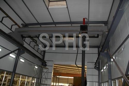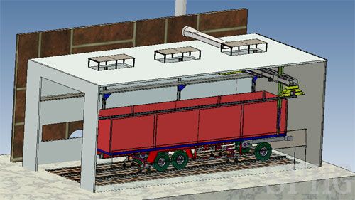 该设备利用基于PC的CNC技术、PLC可编程控制技术及伺服驱动系统,通过对专用车大型箱体喷涂工艺研究,我公司自主研发了专用车大型箱体CNC自动喷涂系统、封闭式净化喷漆房及喷枪自动执行装置,通过预先对专用车大型箱体外形及喷涂图案、颜色进行实时编程并存储到CNC自动喷涂系统中。工件进行喷涂时调出相应的程序,进行全封闭的自动喷涂。由于工人远离了喷漆房,避免了油漆对工人的身体伤害,通过水帘对漆雾净化保护了大气环境。