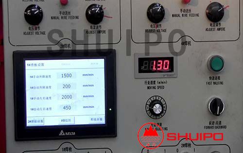 本机采用先进的PLC可编程控制技术、微电子技术,焊接速度达到2m/min,能在同一工件上一次焊接两条水平相对的焊缝,工作效率是传统设备的两倍以上;采用了可靠灵活的柔性自动仿形技术,实现自动跟踪,避免了对变截面部分补焊的缺点;双弧双丝送丝机构,确保了批量生产过程中稳定的焊接成型,避免了薄板焊接时穿透现象。